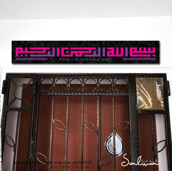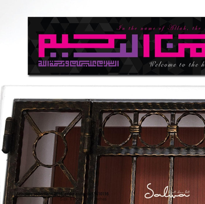 Door Signage with Basmallah Kufi Script. Includes Assallam in Kufi on the right and left.