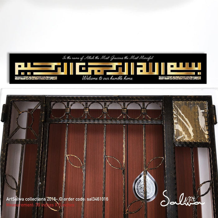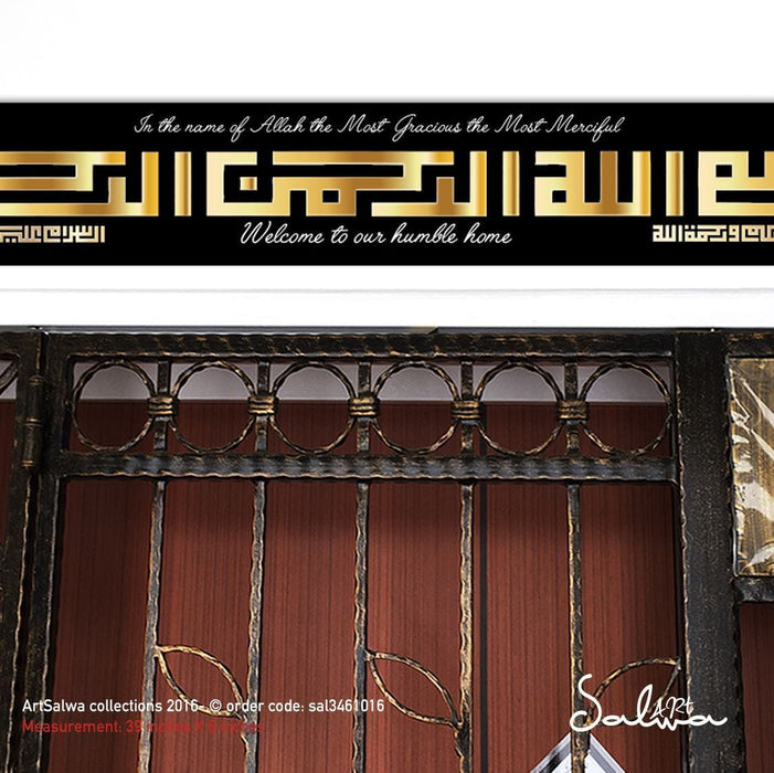 Door Signage with Basmallah Kufi Script. Includes Assallam in Kufi on the right and left.