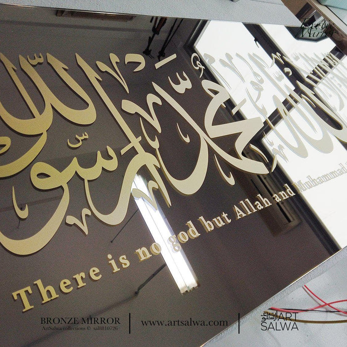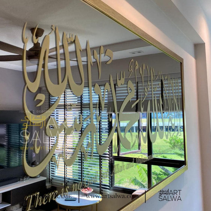 कोई भगवान नहीं है सिर्फ अल्लाह। थुलुथ लिपि में मुहम्मद उनके दूत हैं।
