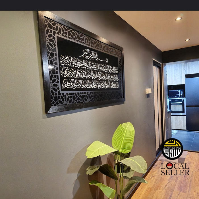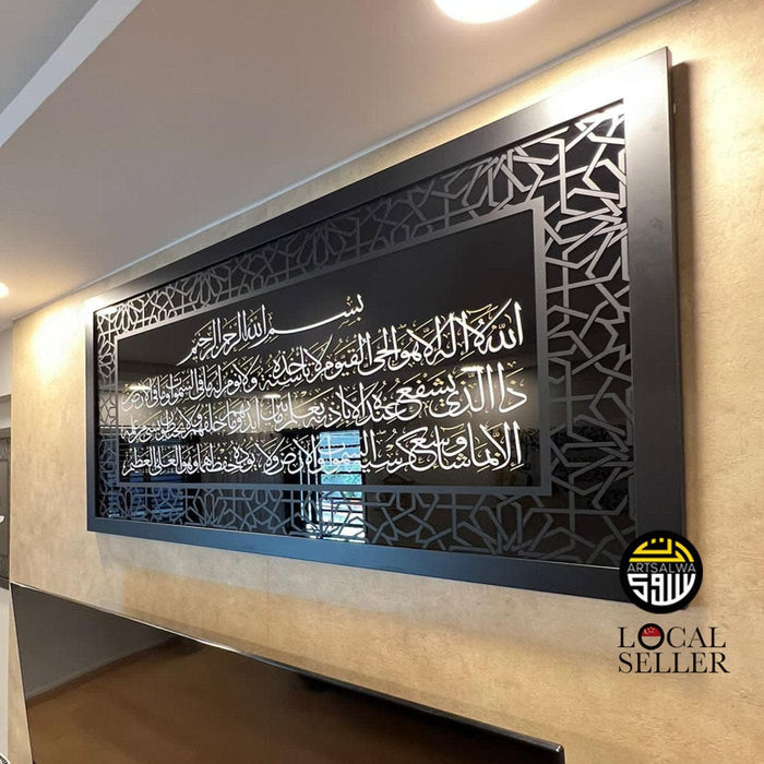 अयातुल कुर्सी ब्लैक मिरर फ़्रेम का निर्माण उच्च गुणवत्ता वाले काले दर्पण से किया गया है, जो किसी भी दीवार को एक अद्वितीय और चमकदार लुक प्रदान करता है। गर्म और चमकदार परावर्तक फिनिश की विशेषता के साथ, फ्रेम किसी भी रहने की जगह में समकालीन डिजाइन का स्पर्श जोड़ता है