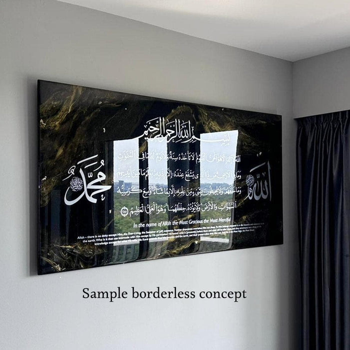 The molten gold hue carries a significant weight, with a hint of gold that leans towards a sunny yellow hue. The 6mm thickness of the ayat stands out, creating an extravagant effect on the artpiece.