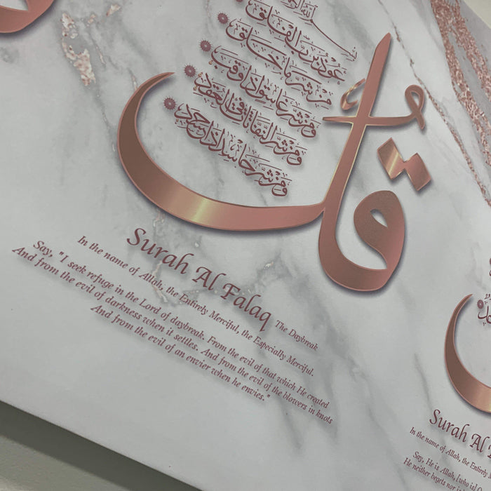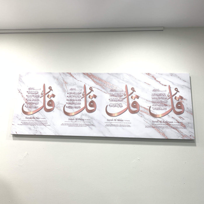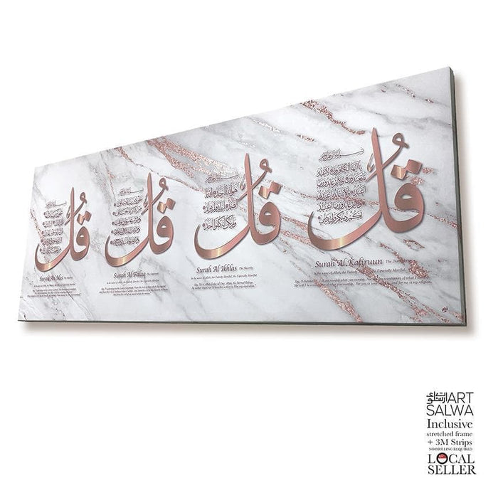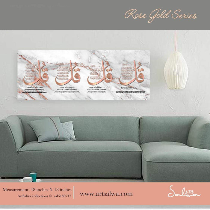 Terdapat empat Qul dalam Quran iaitu Kaafirun, Ikhlas, Falaq dan Nas. Ini dikenali sebagai melindungi surah yang kuat. Surah Kaafirun dan Ikhlas melindungi daripada syirik. Surah Ikhlas adalah Tauhid yang tulen dan sama dengan 1/3 Al-Quran. Surah Falaq dan Nas melindungi daripada kerosakan makhluk ciptaan, dengki, sihir dan bisikan syaitan. Semua surah bermula dengan perkataan yang sebenarnya bermaksud "katakan". Oleh itu empat surah secara kolektif dipanggil sebagai empat Quls. Nabi Muhammad (SAW) akan mendapat wahyu daripada Allah yang akan dimulakan dengan perkataan dan dia akan mengulangi wahyu itu kepada manusia. Empat Quls bermula sebagai: