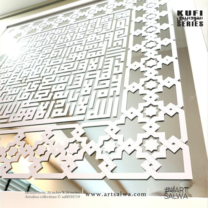 Kufi Ayatul Kursi Bingkai Cermin Putih