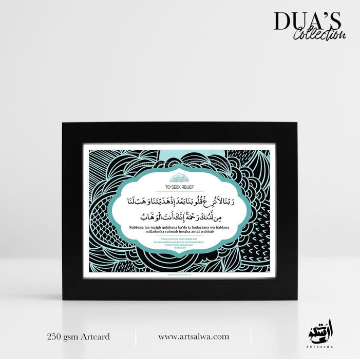 Saiz poskad Duas terdapat sama ada dalam kad seni bersaiz A5 atau dalam siri bingkai lengkap. Sesuai untuk bacaan harian, pindah rumah serta sebarang hadiah majlis khas.